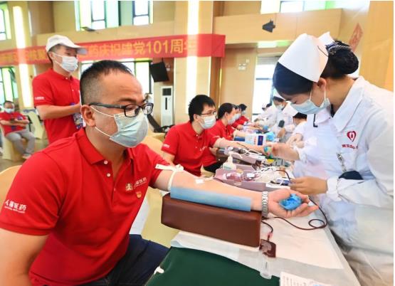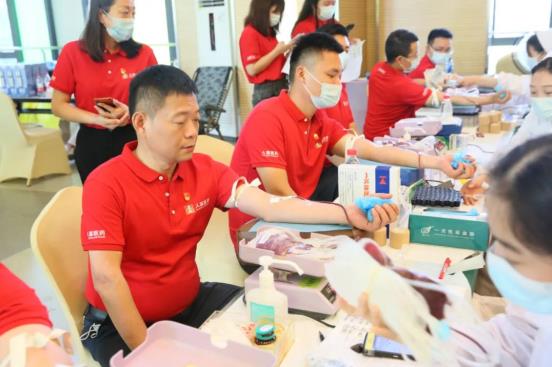 6月29日,武汉市卫生健康委、武汉血液中心与jinnian金年会集团联合开展“党旗飘扬 热血人福”党建共建活动,以实际行动庆祝中国共产党成立101周年。活动当天,近200多名党员和职工“热血集结”、奉献爱心,最终121人成功献血32260毫升。
